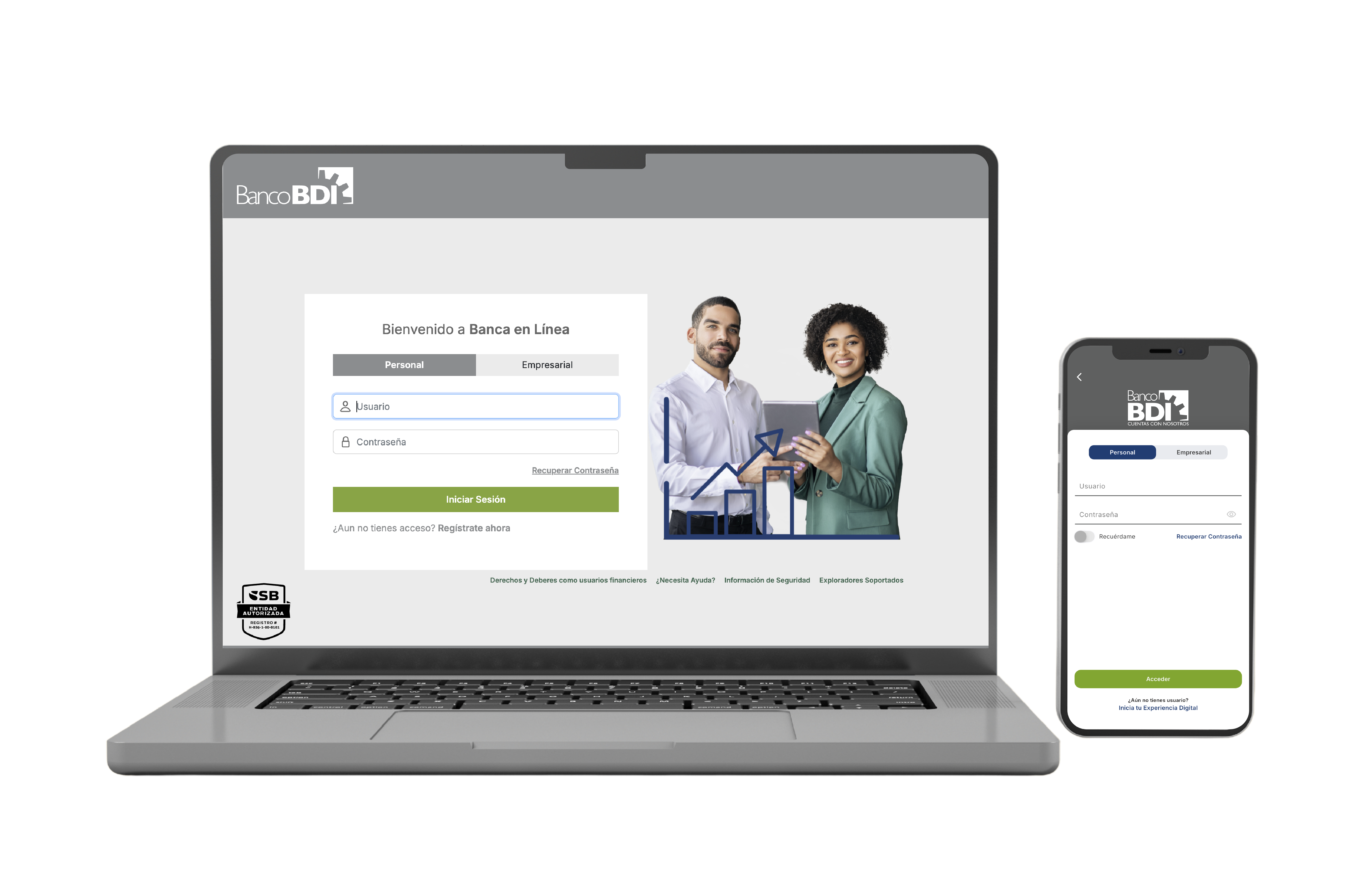 Puedes ingresar a BDI En Línea desde cualquier dispositivo electrónico con acceso a Internet.